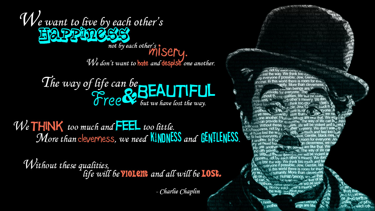 In this class I learned the fundamental features of Photoshop for image editing and graphic design. I also learned more advanced skills such as enhancing and repairing photos, applying filters and patterns, creating color channels and actions, working with tools for web and 3D modeling. (Above picture is one of my favorite quotes by Charlie Chaplin, textured to his picture.)